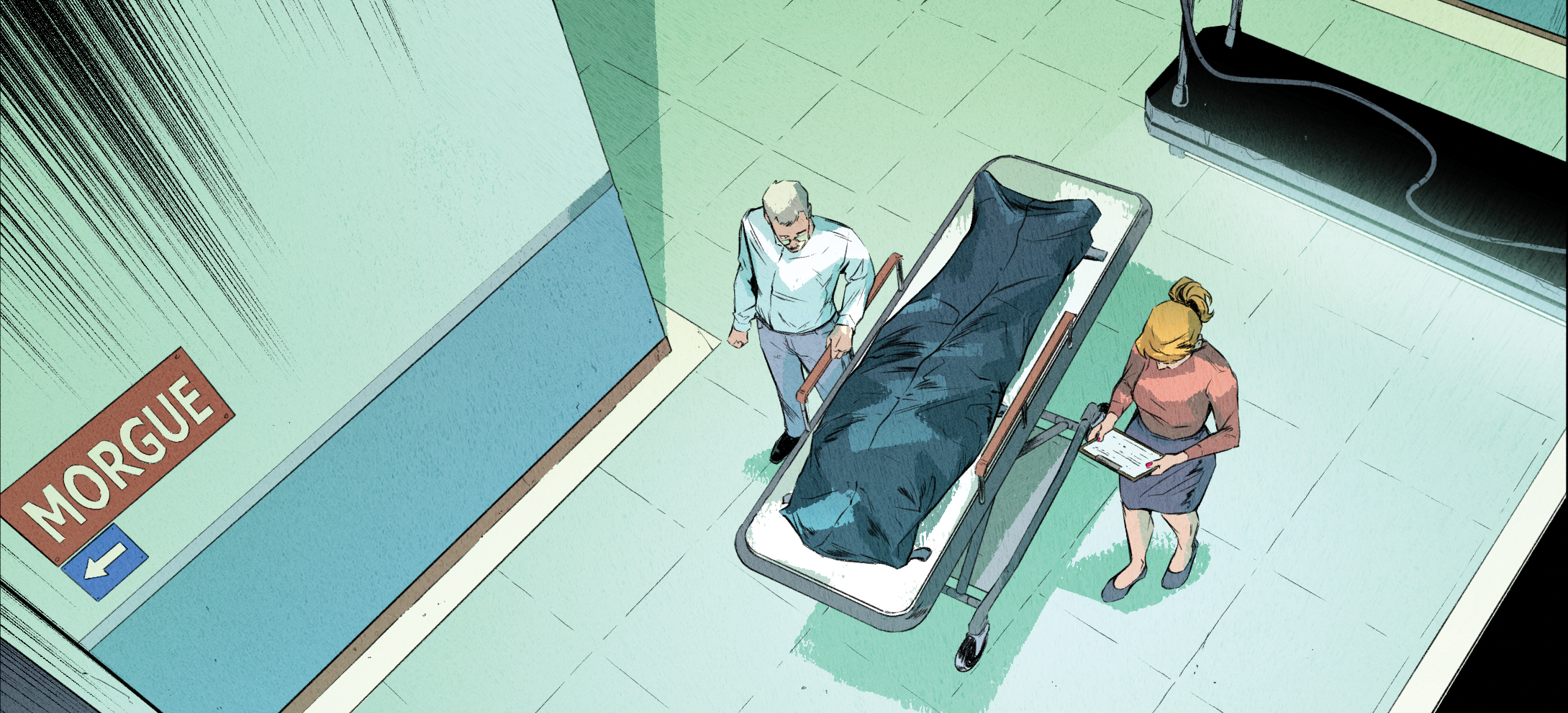 Monika is a seasoned comic artist with a knack for bold lines and sharp storytelling. In Body Bag, her linework moves seamlessly between realms—grounding the sterile hush of the morgue and illuminating the enigmatic glow of the afterlife. Her characters speak volumes, even in silence—the tilt of a head, the clench of a fist, a glance held too long. Stark or surreal, her scenes hum with life. Her panels breathe. And with Monika, every detail matters.